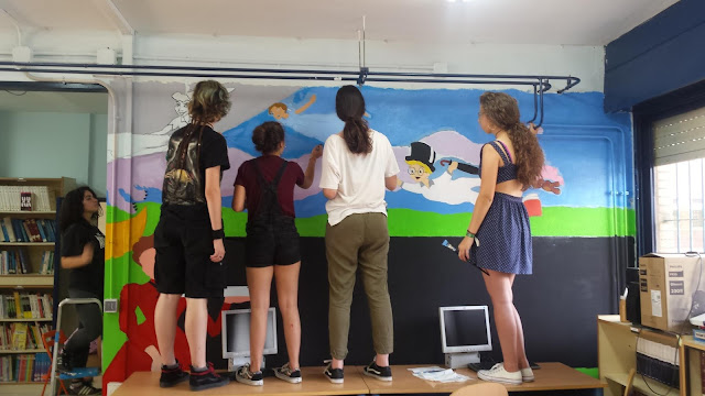 Ahora, después de largas jornadas de limpieza y reorganización, de obras, catalogación de libros, murales tridimensionales en las paredes... Y sobre todo, mucho cariño por parte de todos los que habéis creído y participado en este proyecto; podemos estar orgullosos de nuestra Biblioteca.